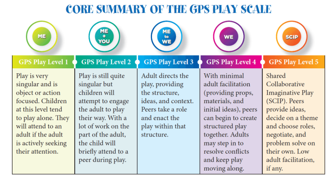 It all starts with a play scale. The top layer of the GPS Scale is displayed below. It gives you a first look at the GPS’s five levels of interactive play.